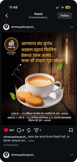 Follow us on social media to explore the true taste of authentic Marathi cuisine. From flavourful misal to traditional dishes, we share daily updates, specials, and behind-the-scenes moments that celebrate Maharashtra’s rich food culture. Join our foodie community today!